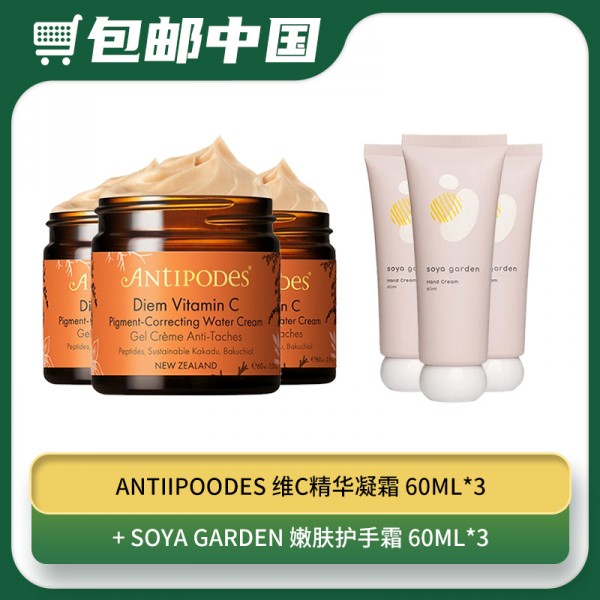 标签: 【10.24包邮中国】antiipoodes 维C精华凝霜 60ml*3+ SOYA GARDEN 嫩肤护手霜 60ML*3