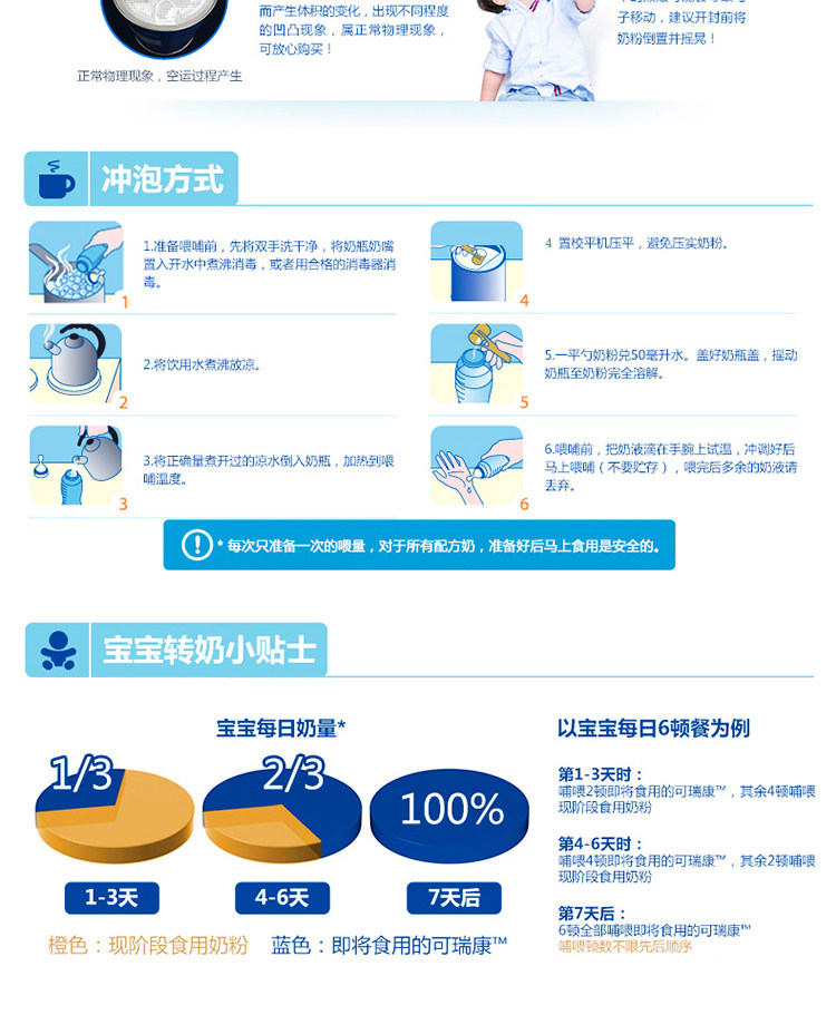 【储存方法】 阴凉干燥处,避免阳光直射,奶粉不能放冰箱,一个月内食完。