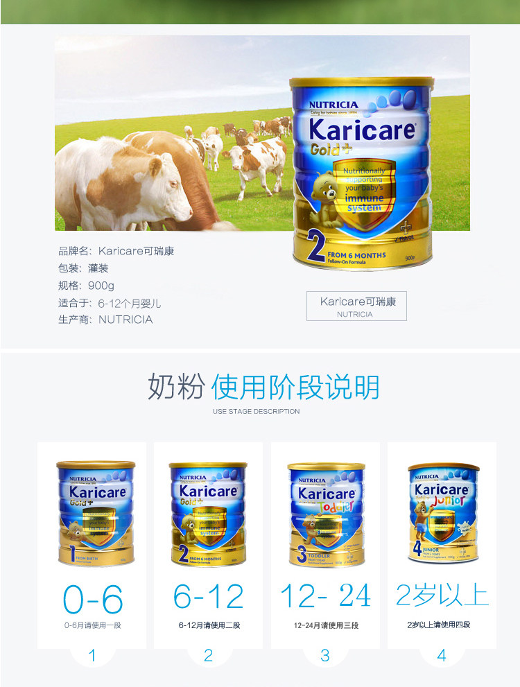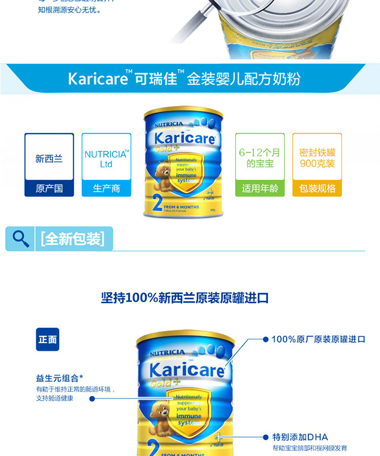 【产品名称】 KARICARE/可瑞康金装牛奶2段
